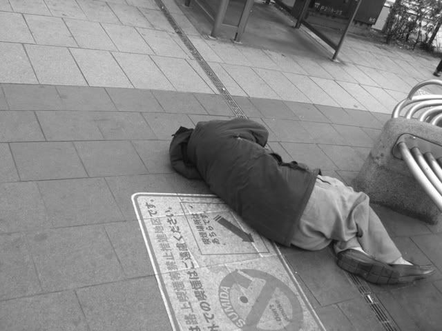 The north gate of Kinshicho station is worse off with about 10 permanent homeless cats who crash out in the middle of the sidewalk