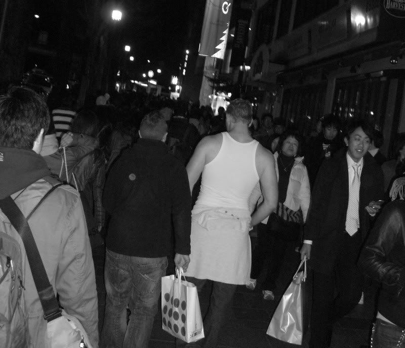 In case you were worried about a shortage of buff gay white men in Tokyo over the holidays, this stud struts his stuff on Ometsando even though it was freezing out.