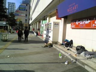 Kinshicho is a shit town in Sumida ku. It's trying to be mint by having a well publicized urban renewal campaign and having a couple shiny new shopping malls open up. Asashoryu, the current bad boy Yokozuna even lives there in Brilla Tower, across the street from Shit Kinshi Koen. This is the urban oasis where I was harassed by a drunken, barefoot, Japanese poor man's Colonel Sanders for being American (and handsome)
