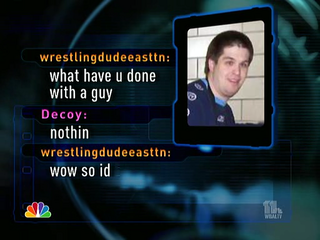 I can't comment on that but I can say that it contends that going through the motions of working is the same as working. Sounds rather impudent, doesn't it? Well, that's To Catch A Predator for you. And there you have it. I am doubtlessly not ashamed to admit that I want to speak in the strongest possible terms against To Catch A Predator's magic-bullet explanations.