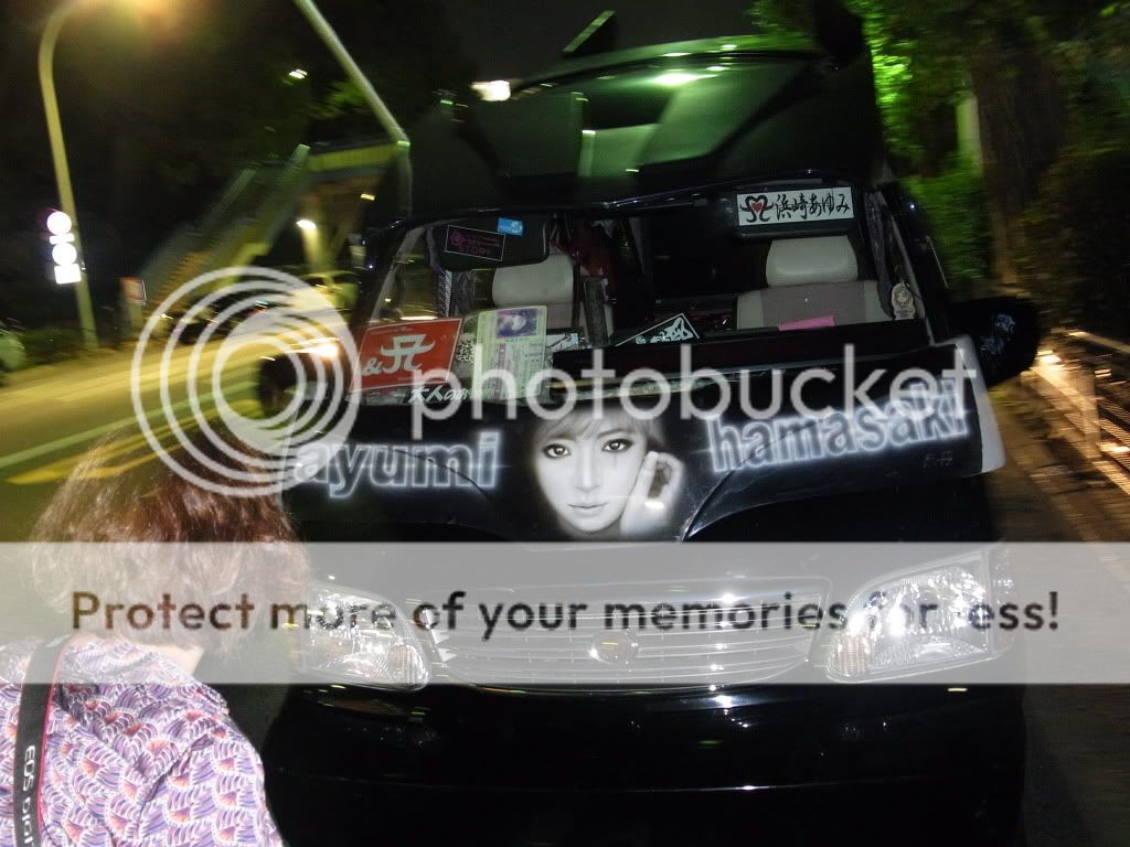 A young Japanese woman is drawn to this van dedicated to Ayu like a moth is drawn to a bright light.